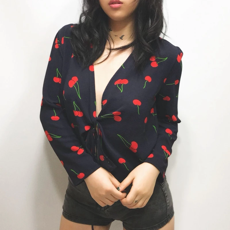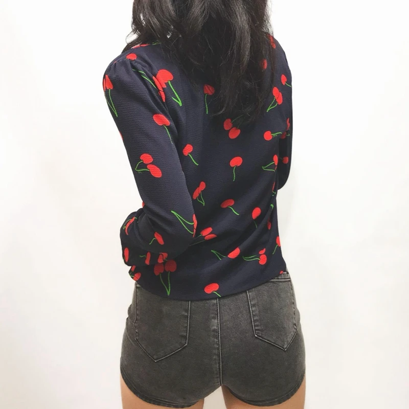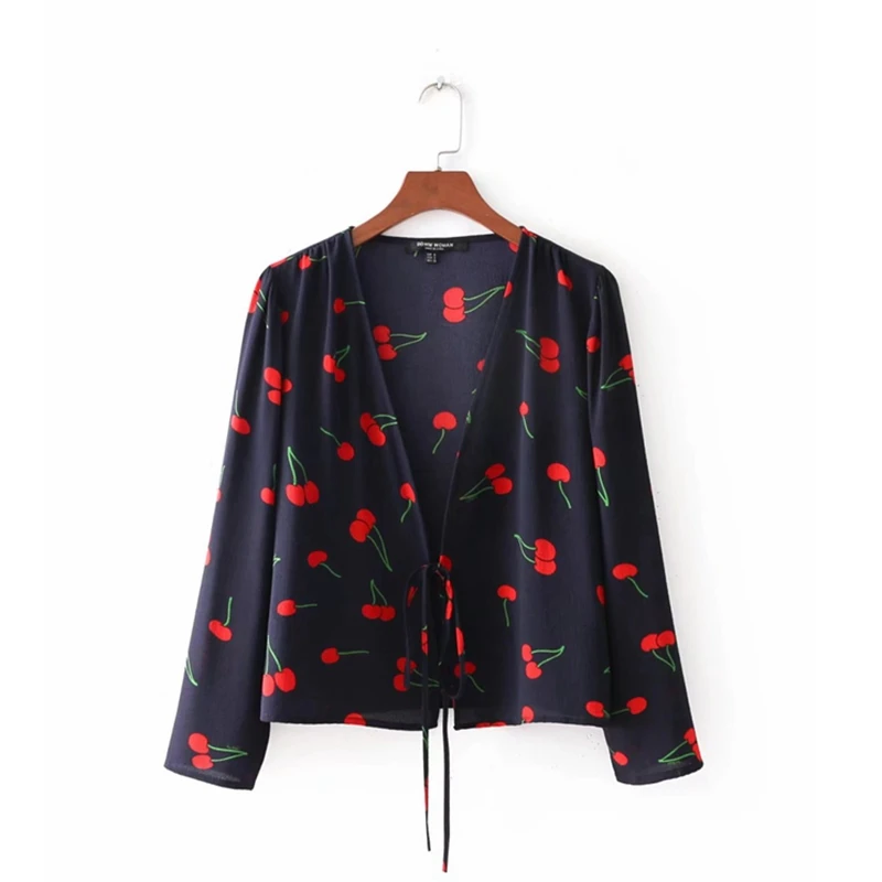 Women vintage V neck flower print shirts short style long sleeve ruffle blouse ladies cherry spring tops blusas korean fashion,2019 Korean fashion Women Tops And Blouses flower cherry Print Summer Sexy bow V Neck chiffon Shirt beach Blouse Streetwear, 2019 Korean fashion Women Tops And Blouses flower cherry Print Summer Sexy bow V Neck chiffon Shirt beach Blouse Streetwear