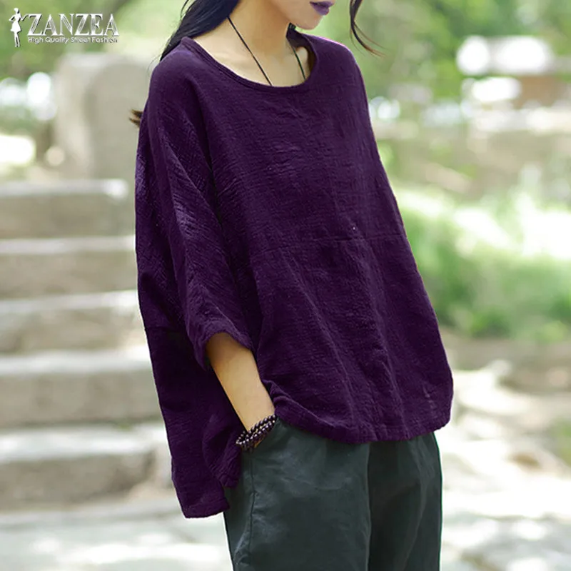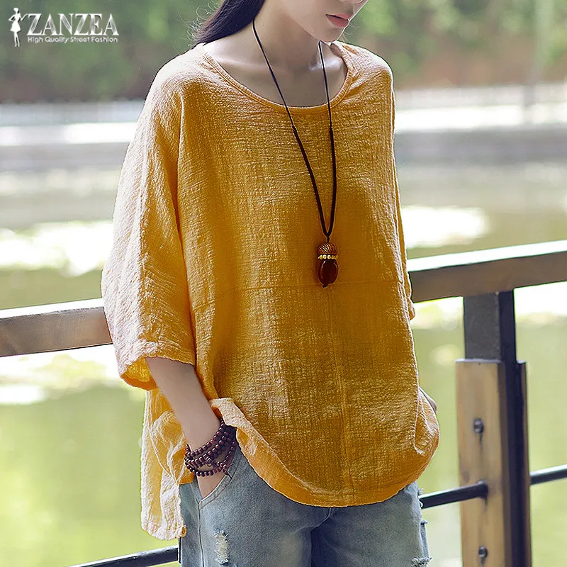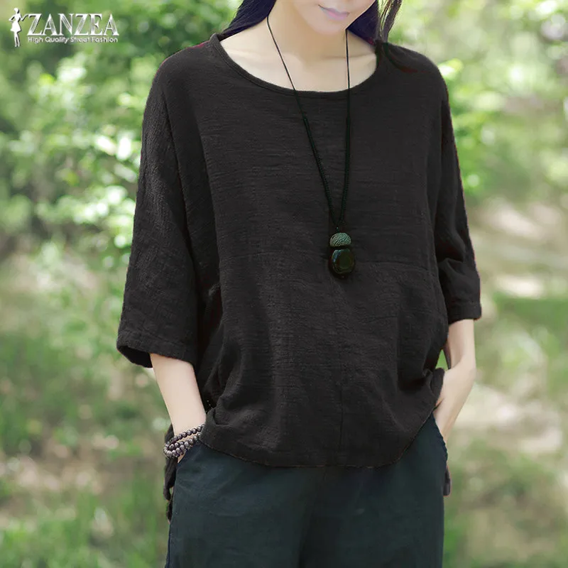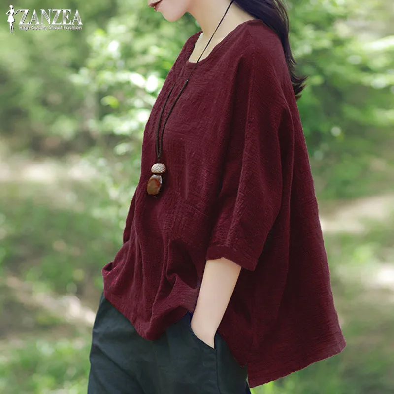 astounding Women's Linen Blouse ZANZEA 2019 Casual Summer Tops Plus Size Women's Shirts Female 3/4 Sleeve Spli