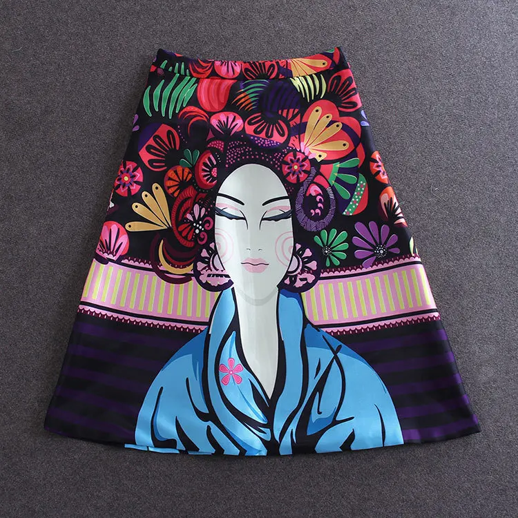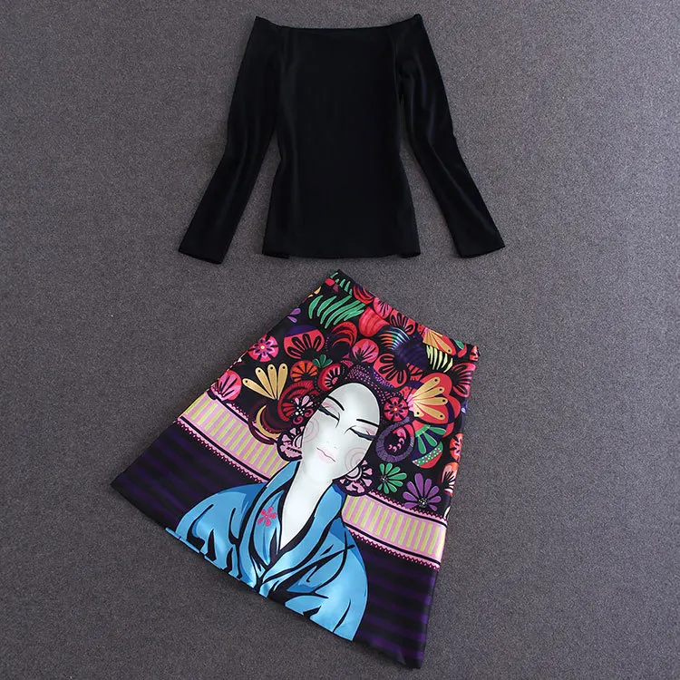 low cost High Street Designer Clothing Set Women's High Quality Black Slash Collar Blouse +2 piece Colorful