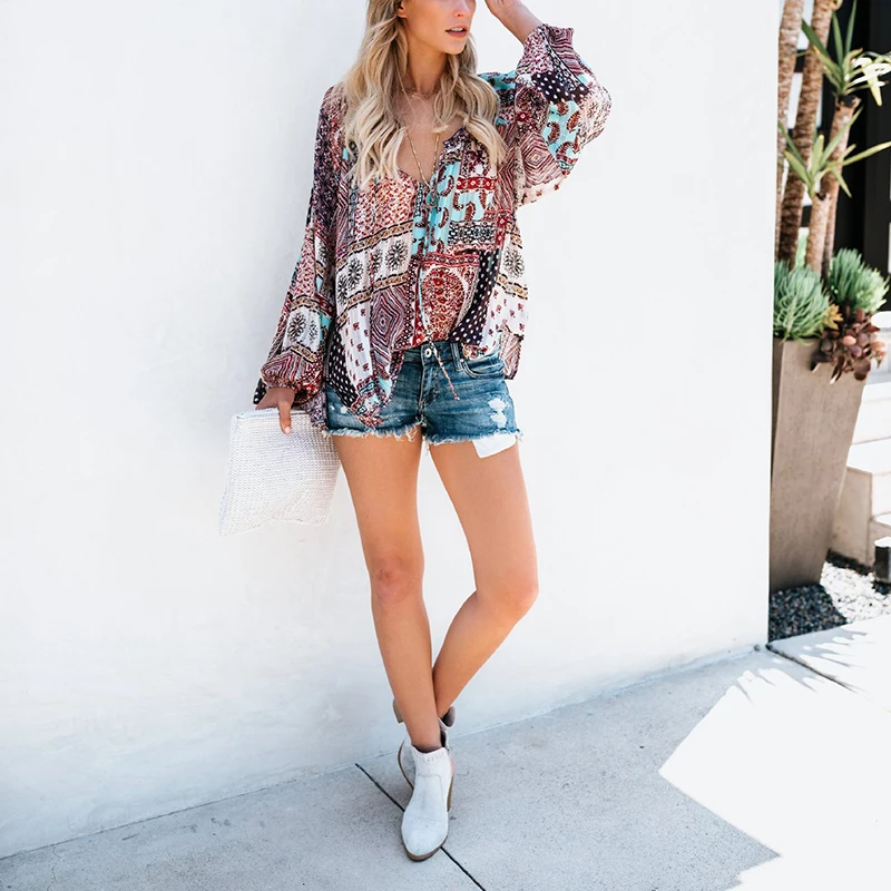 Finest Women Floral Loose Chiffon Blouse Vintage Kimono Cardigan Boho Chiffon Coat Women Short Sleeve Prin