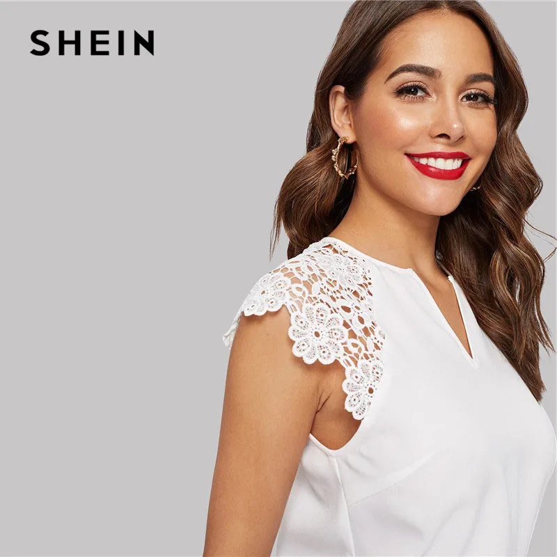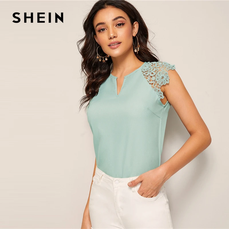 SHEIN V-Placket Lace Trim Shell Top 2019 Elegant V neck Stand Collar Summer Sleeveless Womens Tops and Blouses,SHEIN Keyhole Back Guipure Lace Mock-Neck Women Blouse Ladies Tops Summer Casual Sleeveless Stand Collar Solid Blouse, SHEIN Keyhole Back Guipure Lace Mock-Neck Women Blouse Ladies Tops Summer Casual Sleeveless Stand Collar Solid Blouse