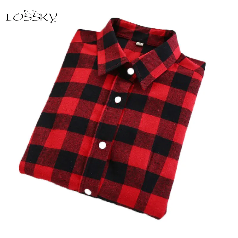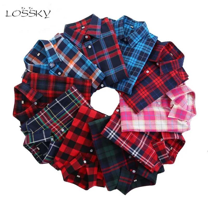 buy 2019 Brand New Fashion Checkered Shirt Women's Casual Style Women's Blouse With Long Sleeve Flannel
