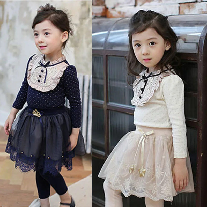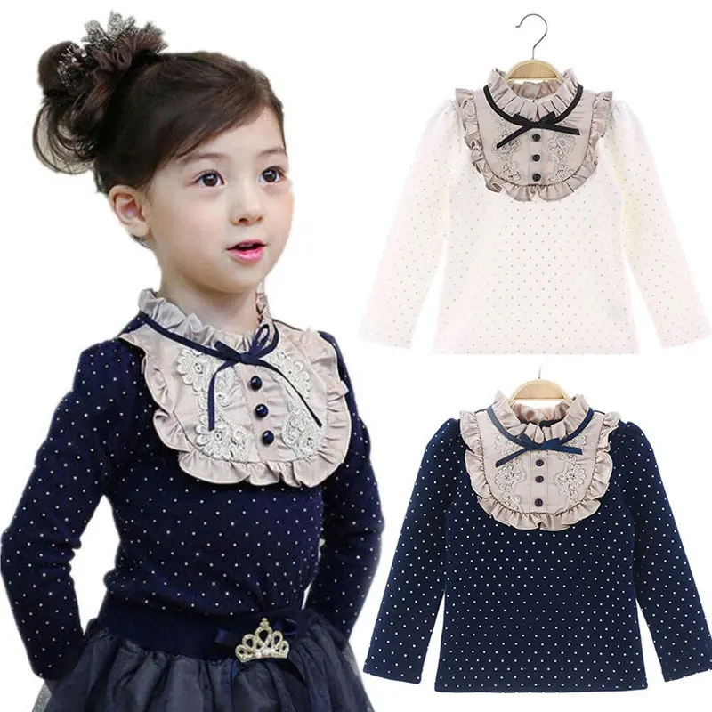 remarkable lememogo Autumn Cotton Girls Shirts School Children Blouses Clothing Kids Cute Lace Dot Long Sleeve