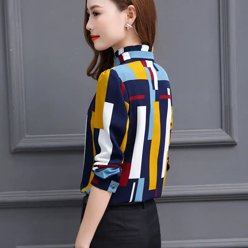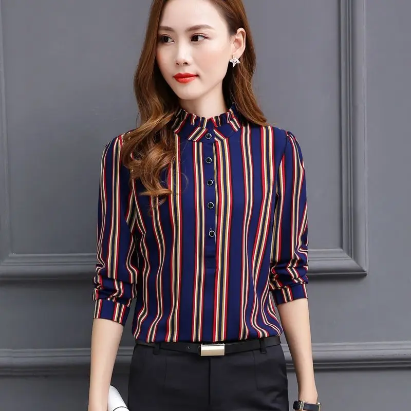 buy Blouse Women Fashion Long Sleeve Stand Collar Office Shirt Chiffon Blouse Shirt Casual Tops Plus Si