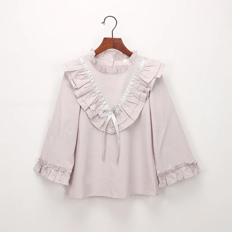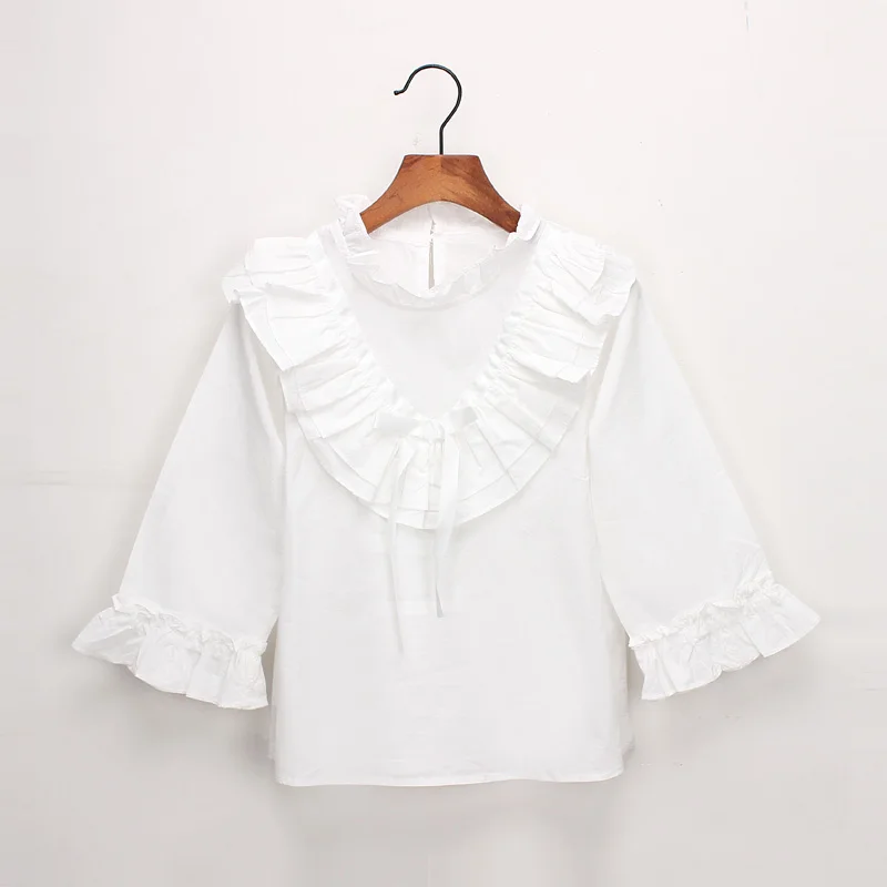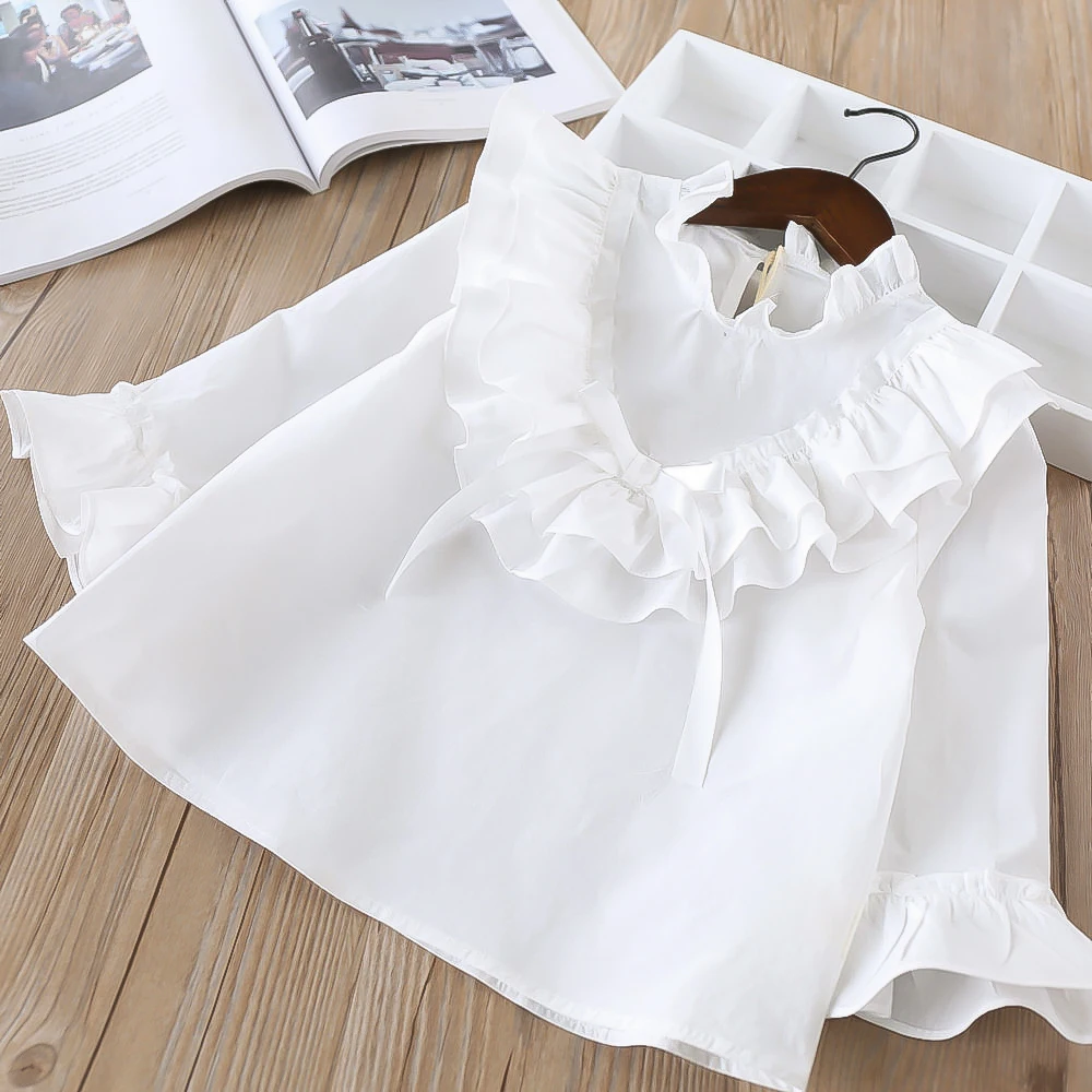 price reduction Hurave elegant baby ruffles cute Solid blouses Girls Clothes Children full Sleeve shirts causal cot