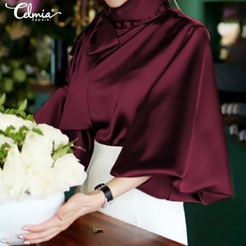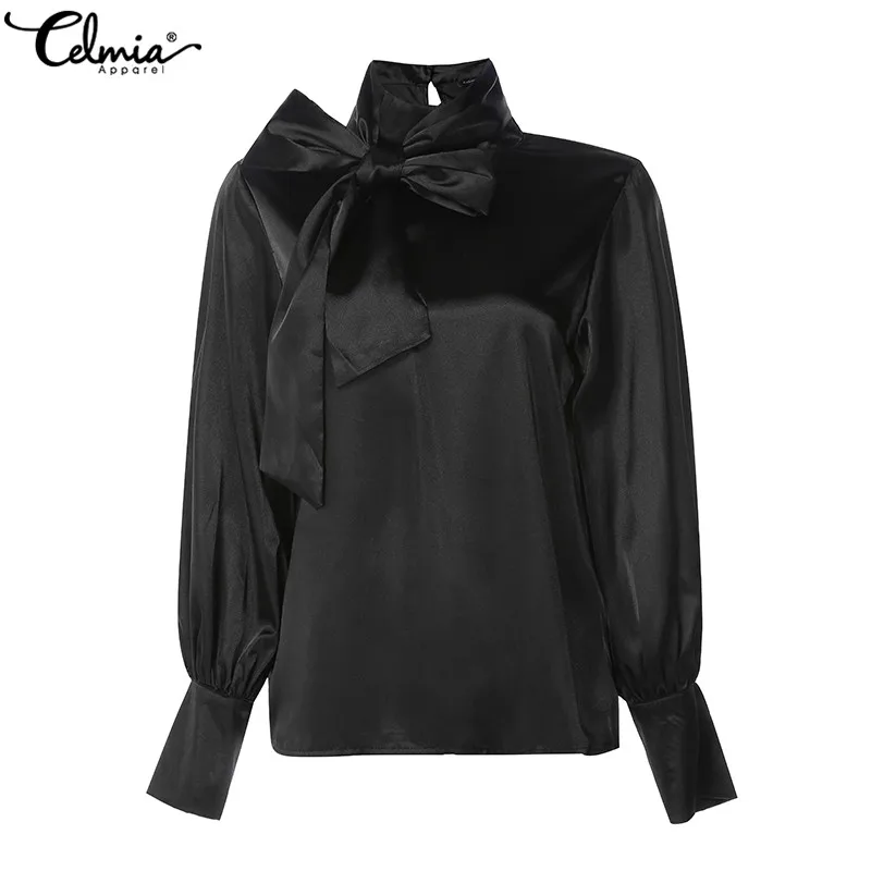Very best 2019 Celmia White Elegant Women Blouse Fashion Casual High Collar Lantern Sleeve Blusas Bow Tops OL