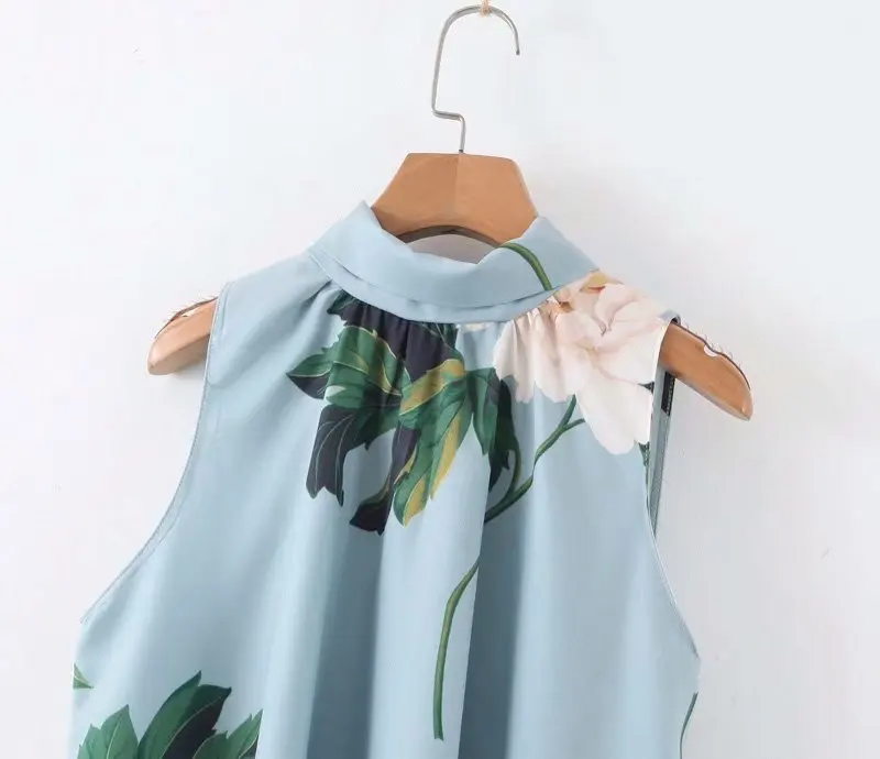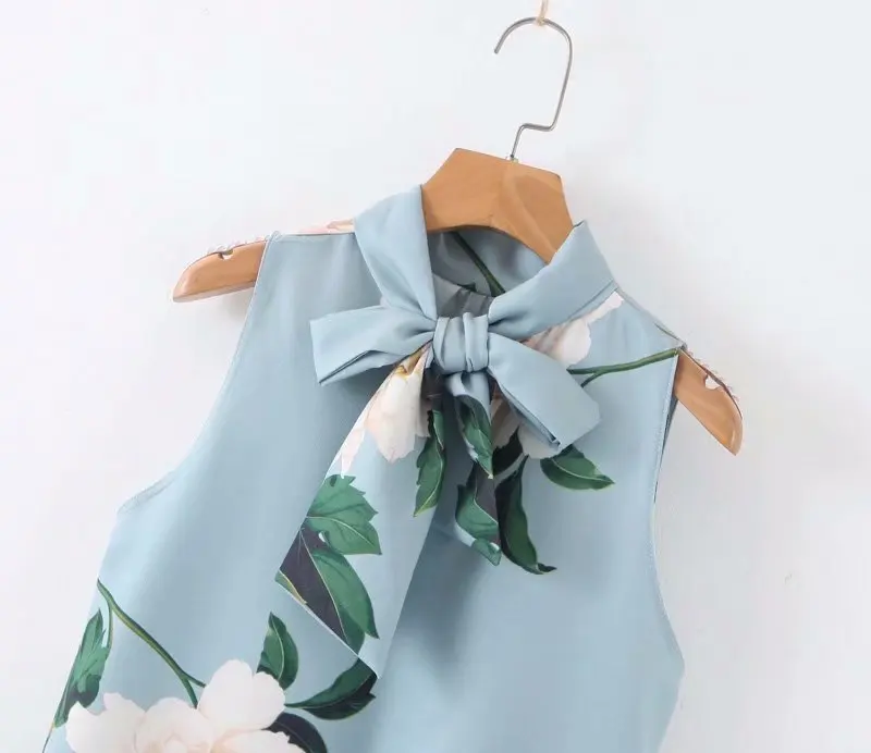 discounted 2019 new women elegant floral print casual smock blouses ladies sleeveless back bow tied chic shirt