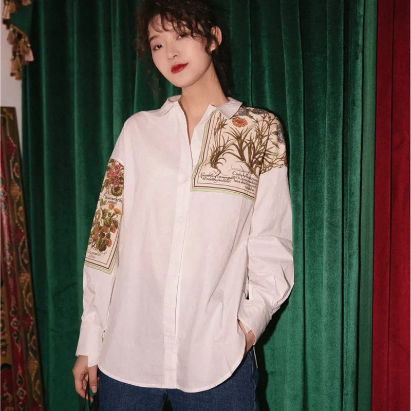 Very best LANMREM 2020 Spring summer clothes for women Botany Atlas Printing White Shirt loose casual design