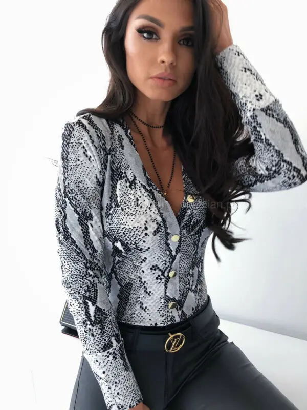 New Women's Snake Skin Printed Shirts Ladies Kimono Tops Blouse Long Sleeve Turn Down Collar Elegant La