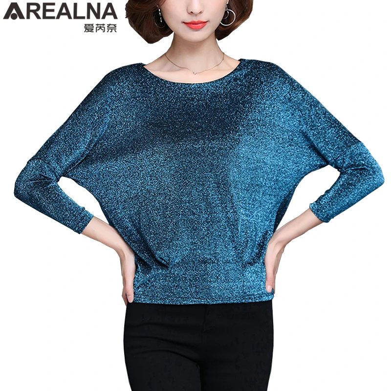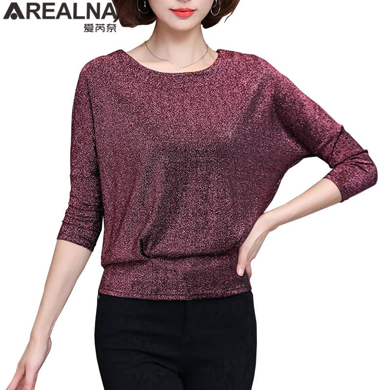 Very best Sequin Lurex Women Blouse Shirt Korean Fashion Bat Sleeve Shiny Womens Tops and Blouses Stretch Sli