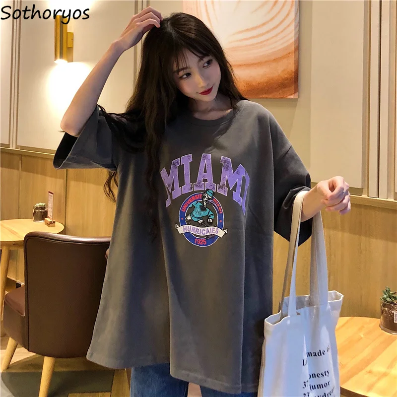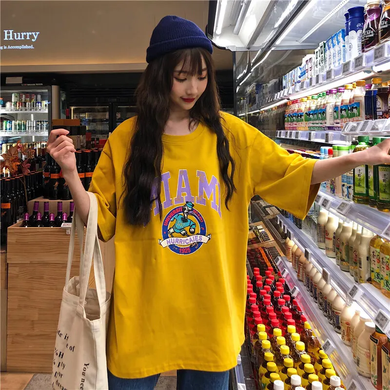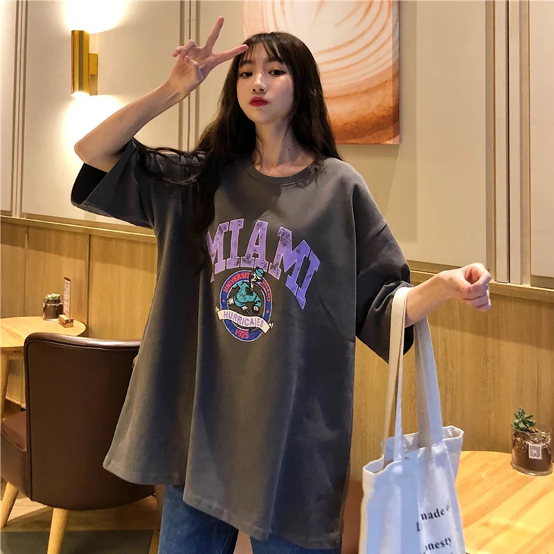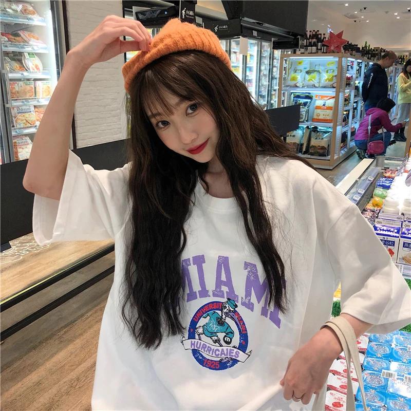 awesome T-shirts Women Letter Printing Funny Tshirt O-Neck Simple All-match Cartoon Trendy Womens Tee Top C