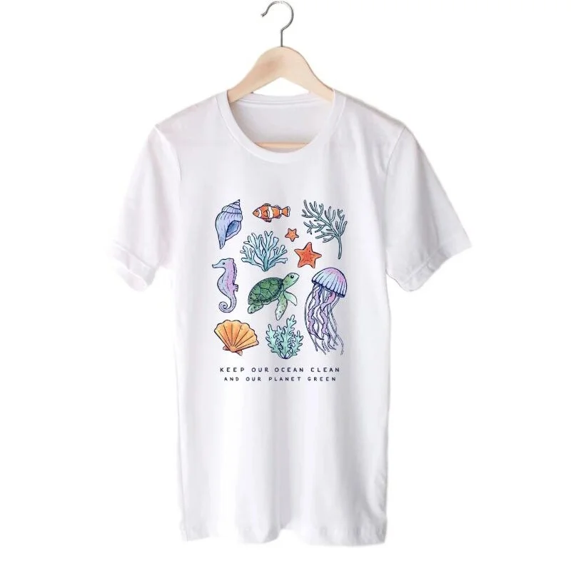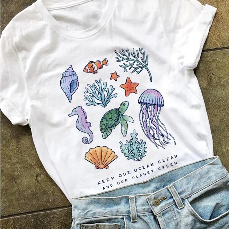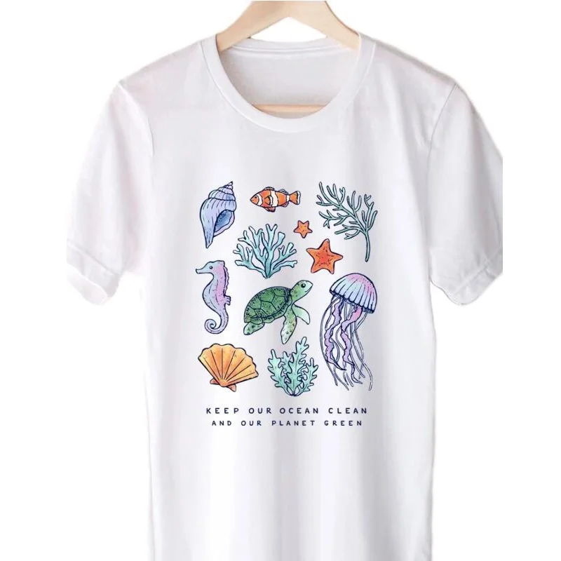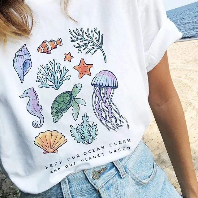 discounted hahayule-JBH Keep Our Ocean Clean and Our Planet Green Graphic Tshirt Free The Orcas Save Turtle T-