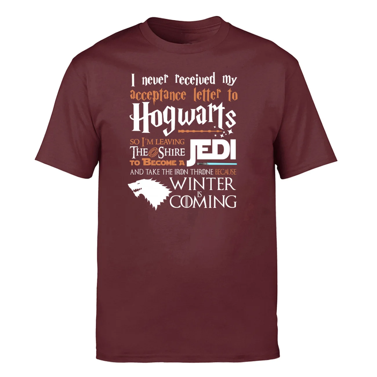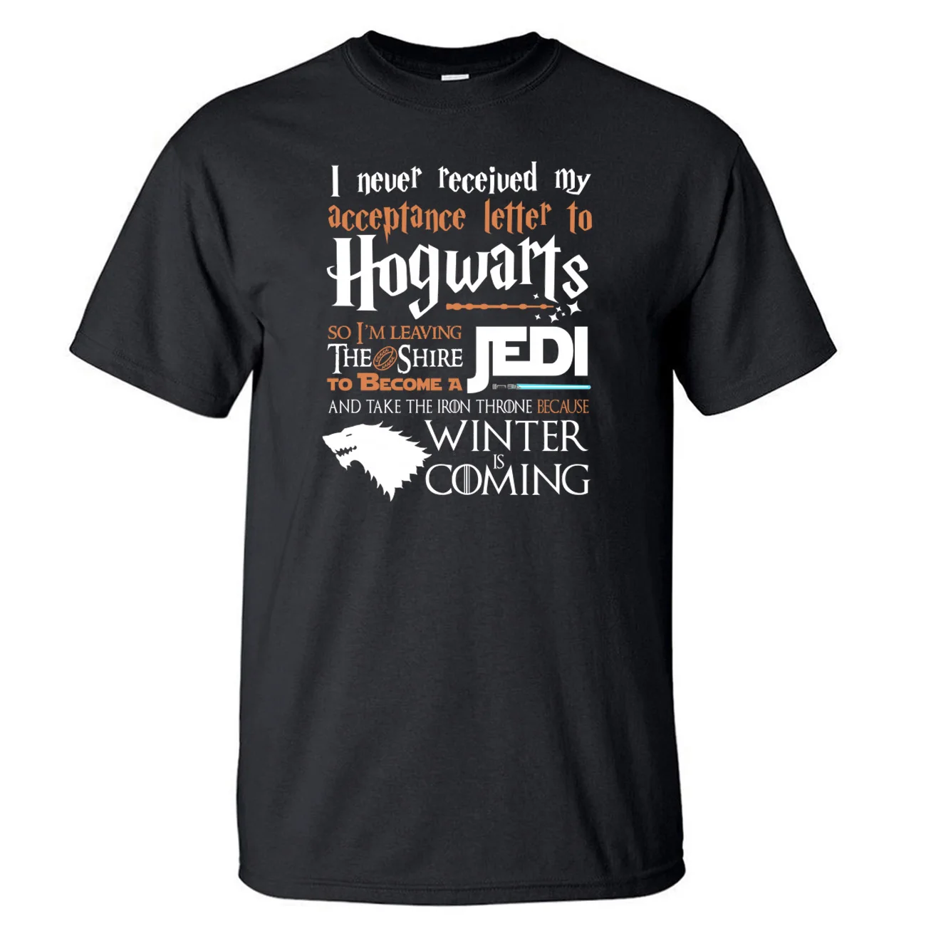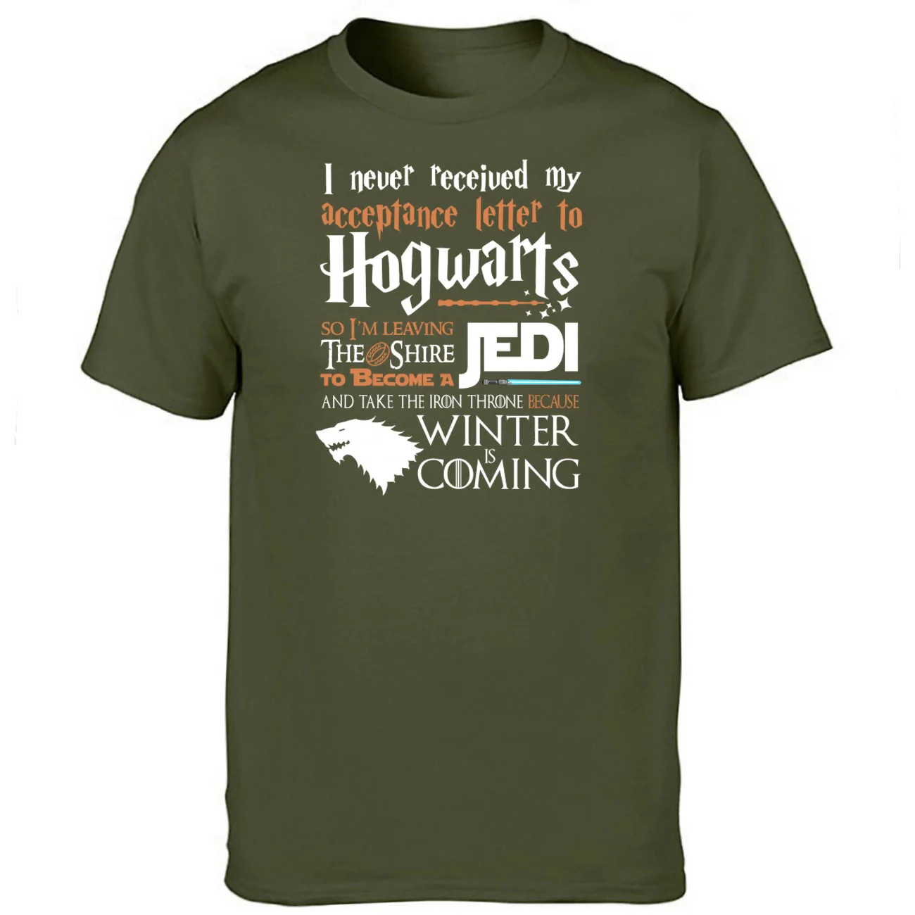 discounted Hogwarts Game of Thrones Star Wars Jedi TShirt Men T Shirt Summer Tops Short Sleeve Winter is Comin