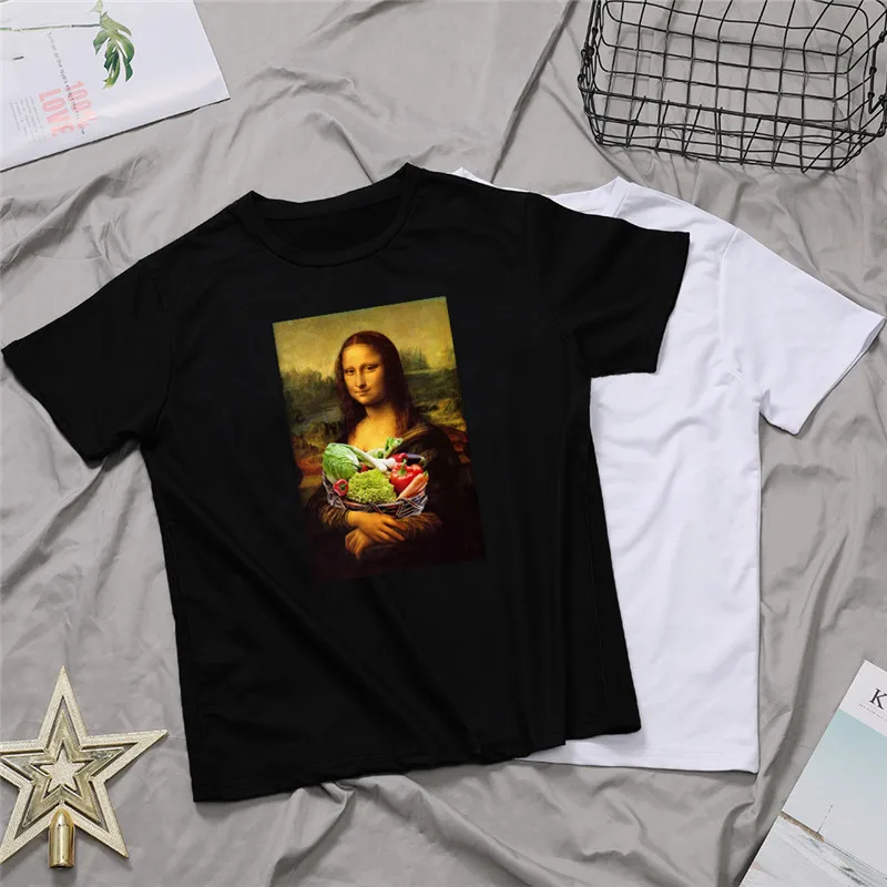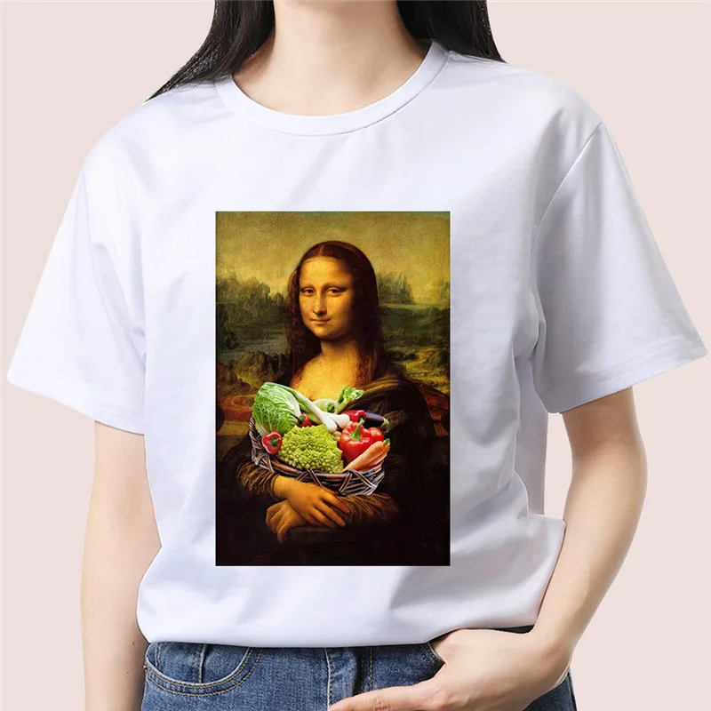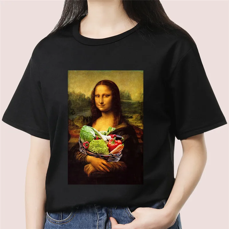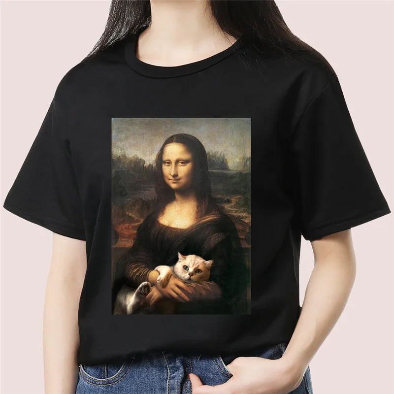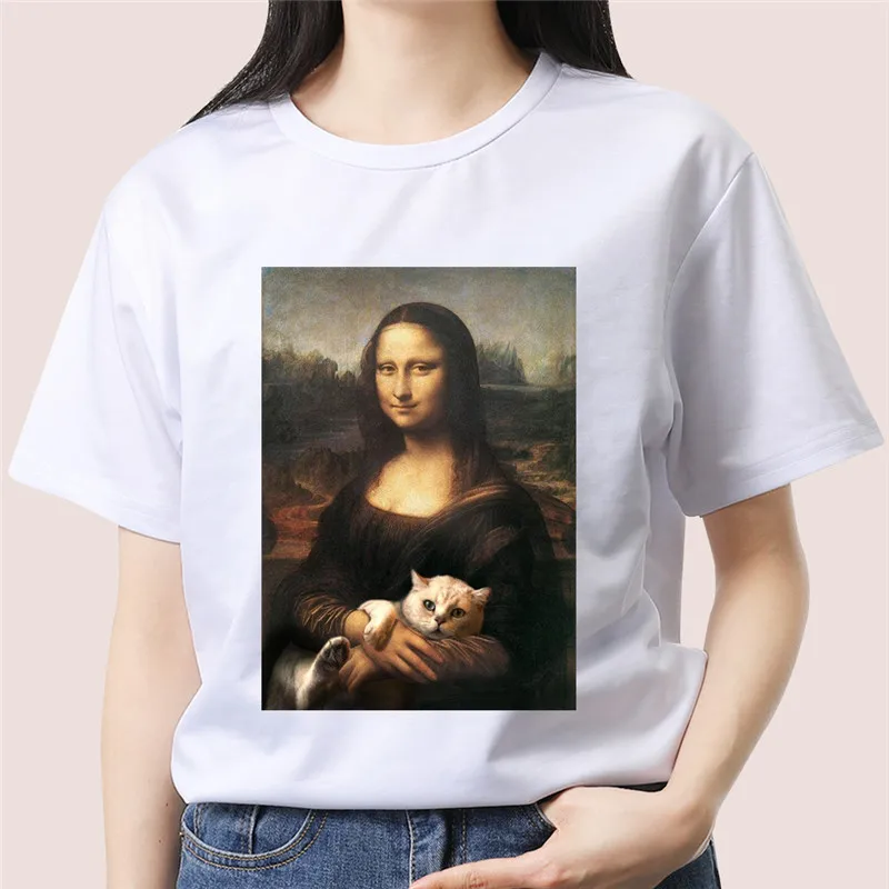 Finest Funny Mona Lisa Aesthetic Harajuku T Shirt Women Vintage Graphic T-shirt Cartoon Cotton Tshirt Kore