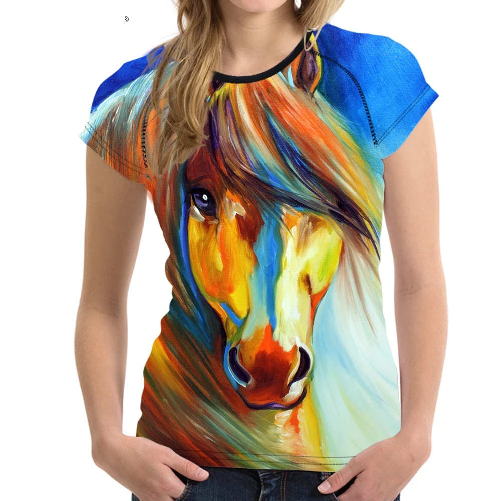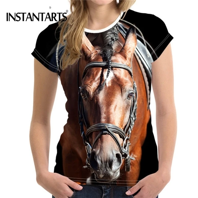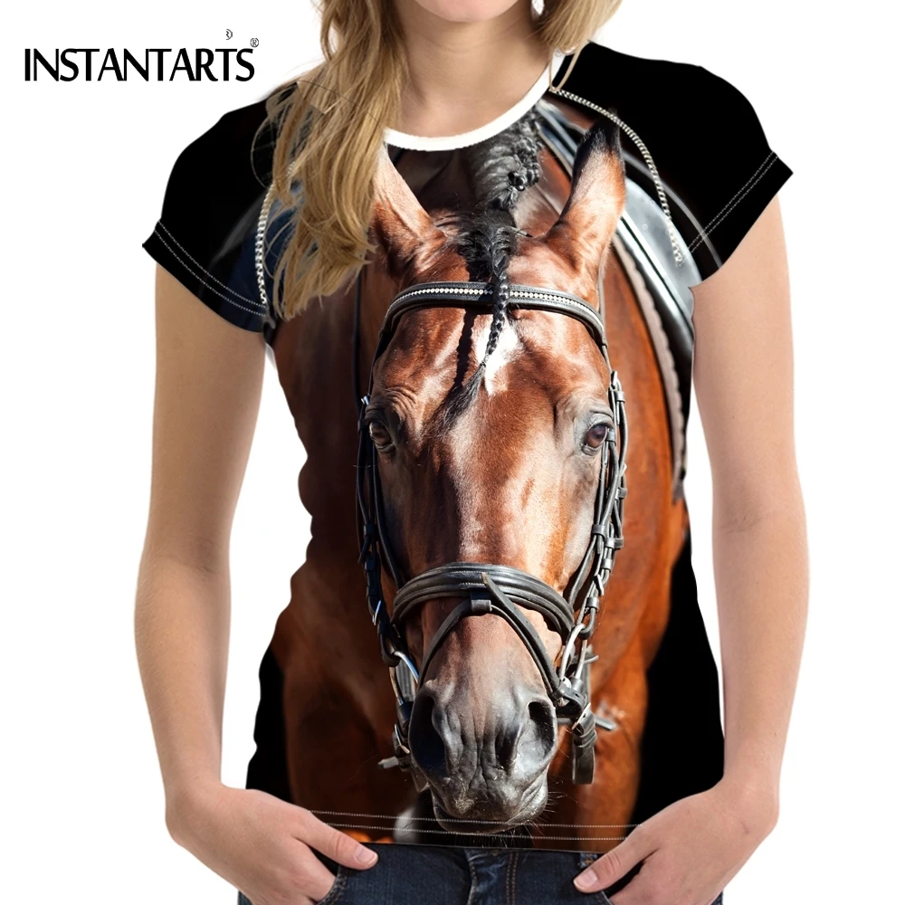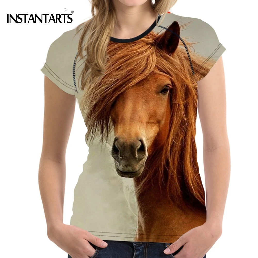 Greatest INSTANTARTS Cool 3D Horse Print T Shirts Women Fitness O Neck Tshirts for Teenager Girls Brand Desi