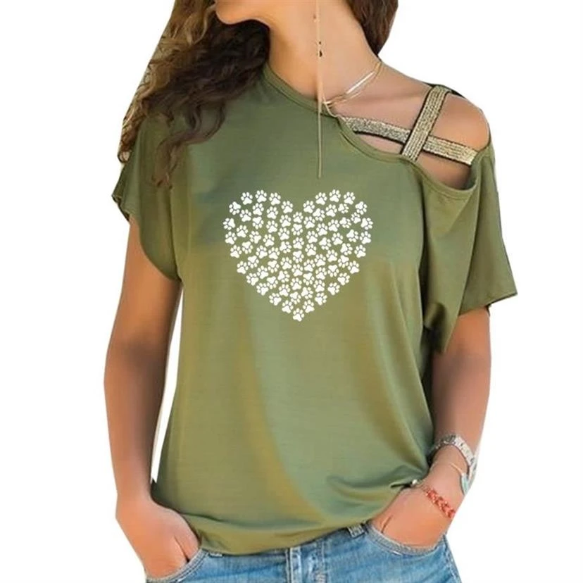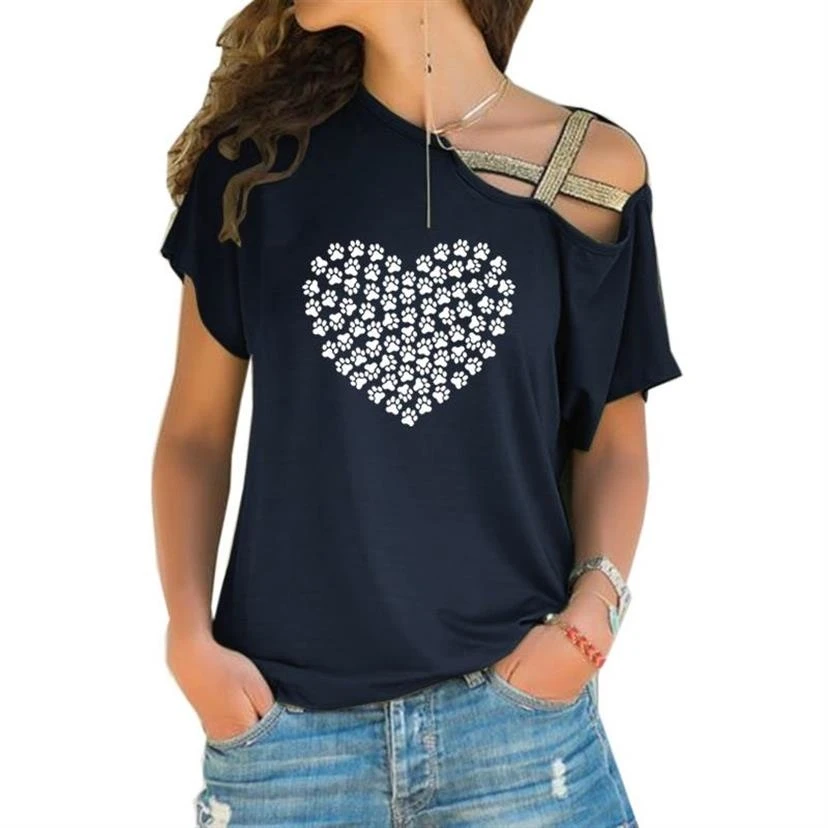 Ideal New Fashion T-Shirt For Women Dog Paw Letters Print Cross Bandage Harajuku Tops T-Shirt Tshirt Summ