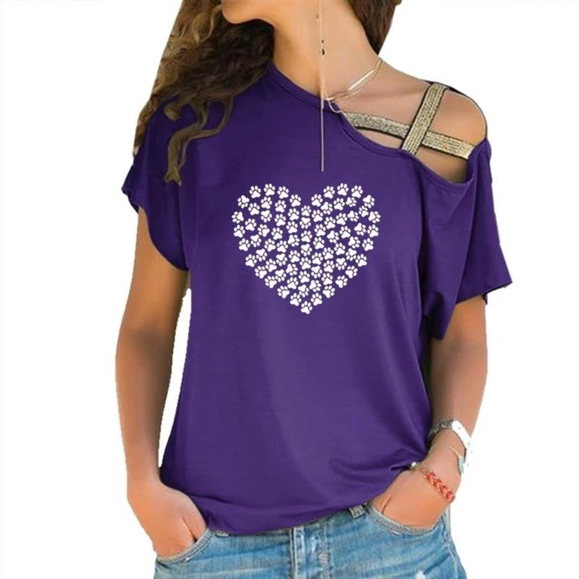 remarkable New Fashion T-Shirt For Women Dog Paw Letters Print Cross Bandage Harajuku Tops T-Shirt Tshirt Summ