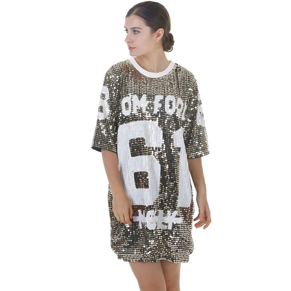 remarkable Sequins Medium-long Tee Shirts 2019 New letter Short Sleeve T Shirt O-neck Women t shirt Fashion Bl