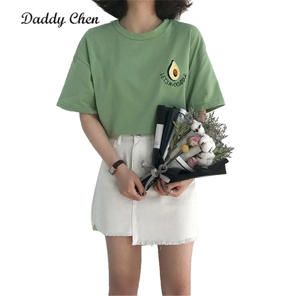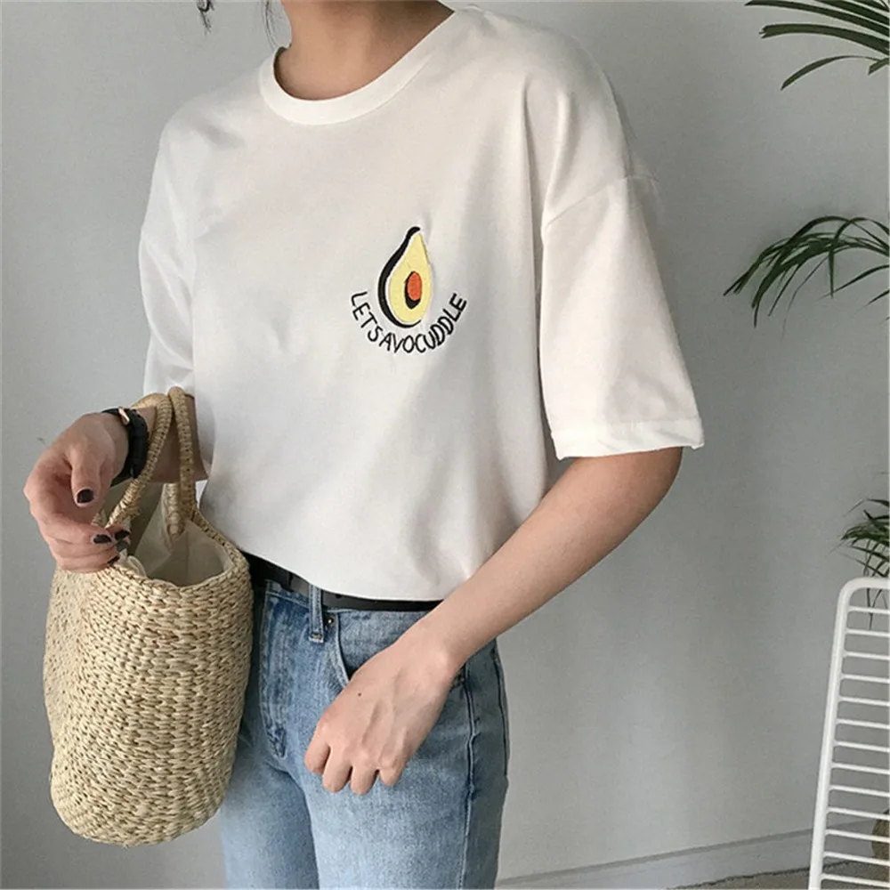 price reduction Harajuku Cute Avocado Embroidery t-shirt short sleeve tees tops funny women t shirt Loose blue summ