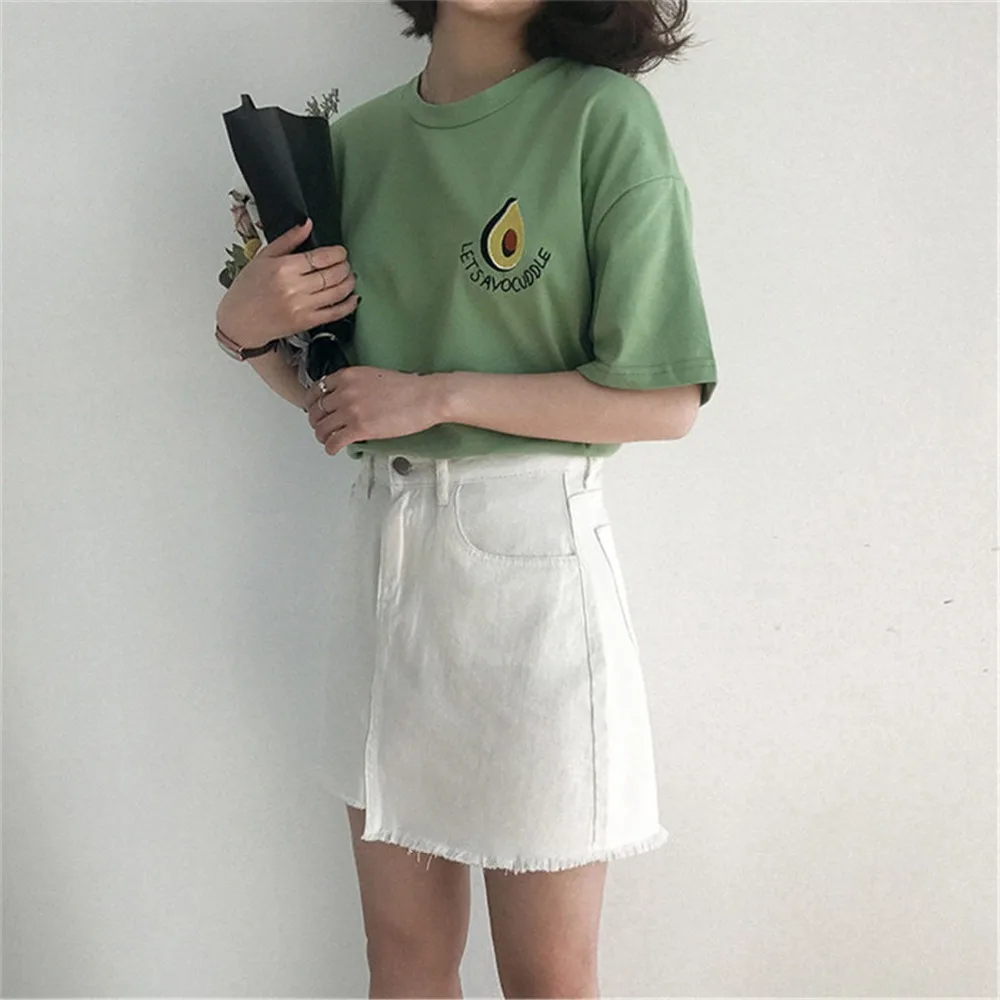 discounted Harajuku Cute Avocado Embroidery t-shirt short sleeve tees tops funny women t shirt Loose blue summ