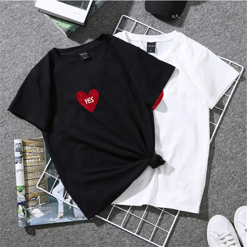 price reduction Korea New 2019 Spring Summer tshirt BF Love Print College Short Sleeve T-shirts Female T Shirt Hara