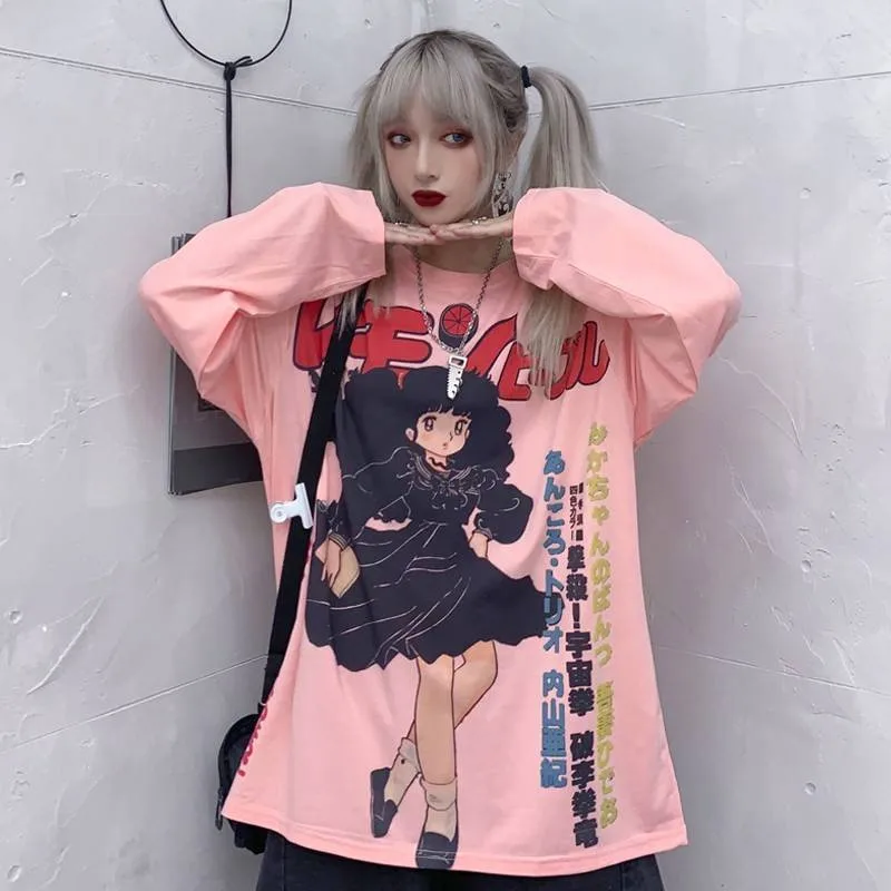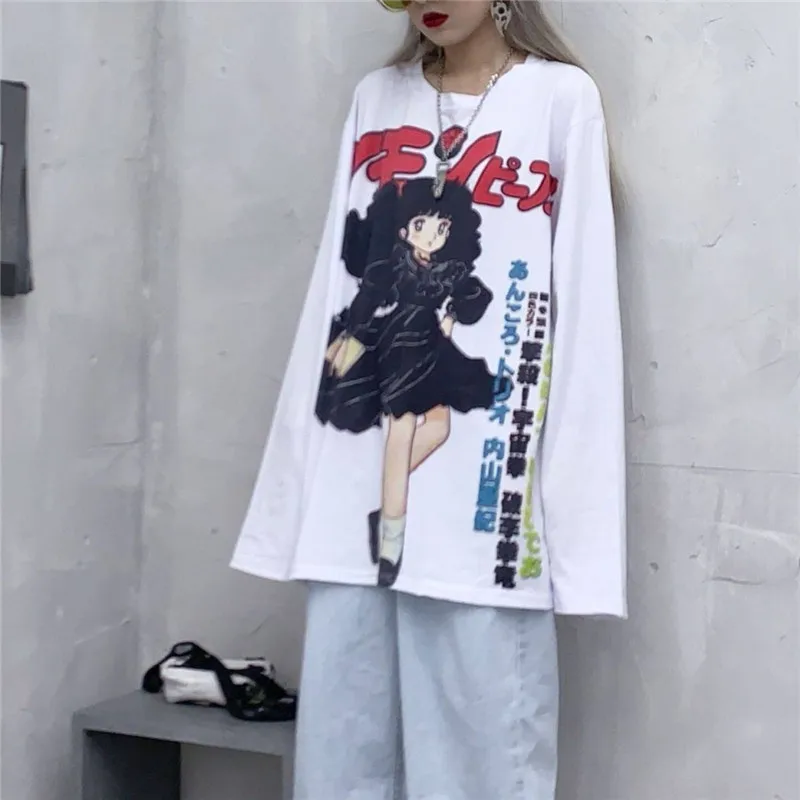 Promo Harajuku Tshirt Streetwear Anime t shirt Females Cool Cartoon Print Hip Hop Streetwear Funny Print