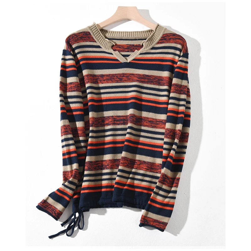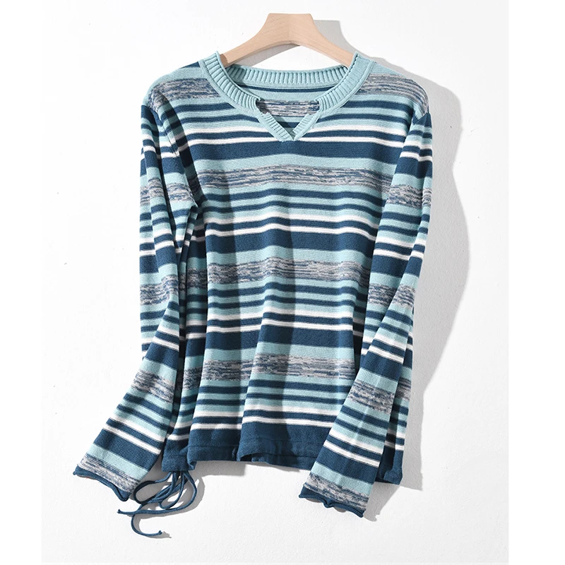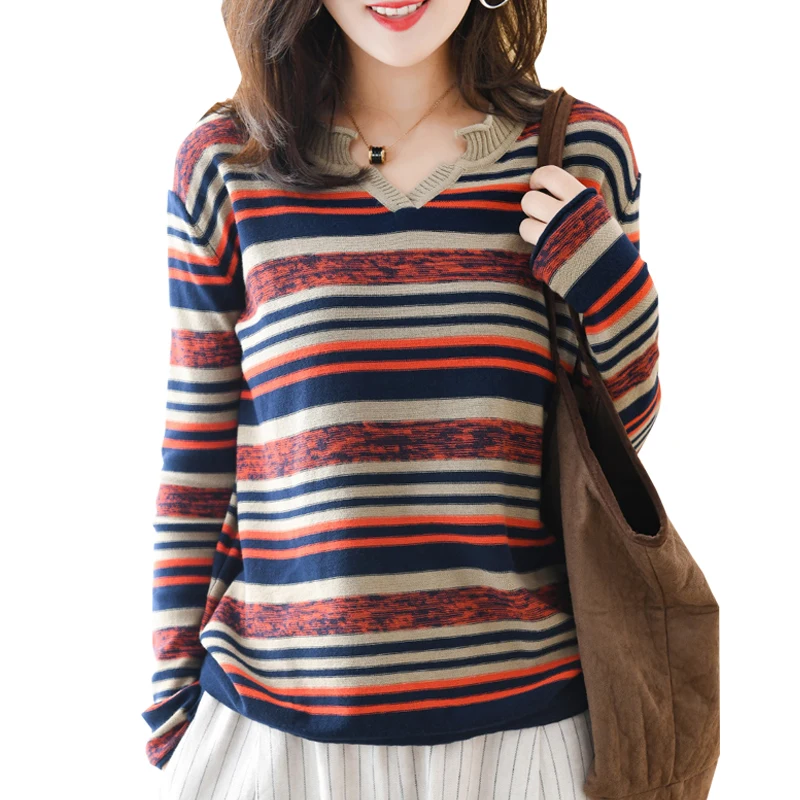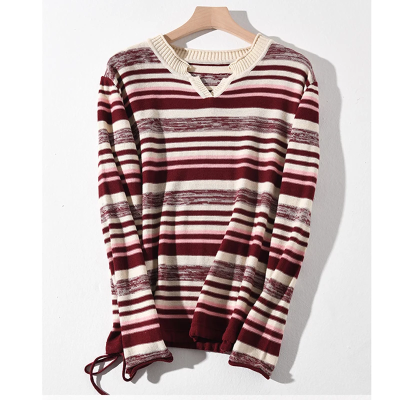 wonderful shintimes Striped Tshirt Women New Arrivals 2019 Fall Winter Vogue V-Neck Cotton Long Sleeve Shirt
